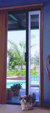 Now "Fido" can let himself in and out with this Mill Finished (Aluminum) Fast Fit Pet Patio Tall Door. It only takes a minute to install this useful patio pet panel with its draft stopping watertight seal, and you can even take it with you when you move. There is no assembly required because it adjusts in height from 93 3/4" to 96 1/8" to ensure a perfect fit in any sliding glass door, either right or left opening. This option is for 8' tall doors, and your pet passes through a 5" x 7" size flap. Made of tough safety glass, it has a lockout slide and a security lock for added protection. Available in Mill (Aluminum), White or Bronze finishes. .